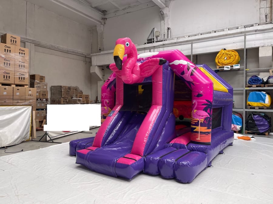 Imagine the laughter and excitement as kids bounce away, surrounded by a vibrant flamingo theme. The bouncy castle is not just a play area but a lively party zone with fantastic features: