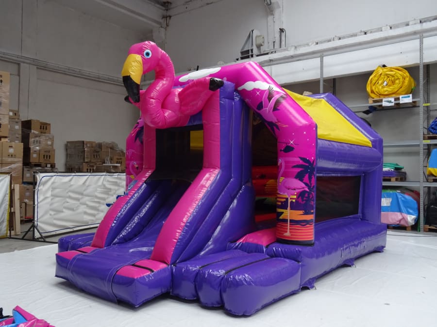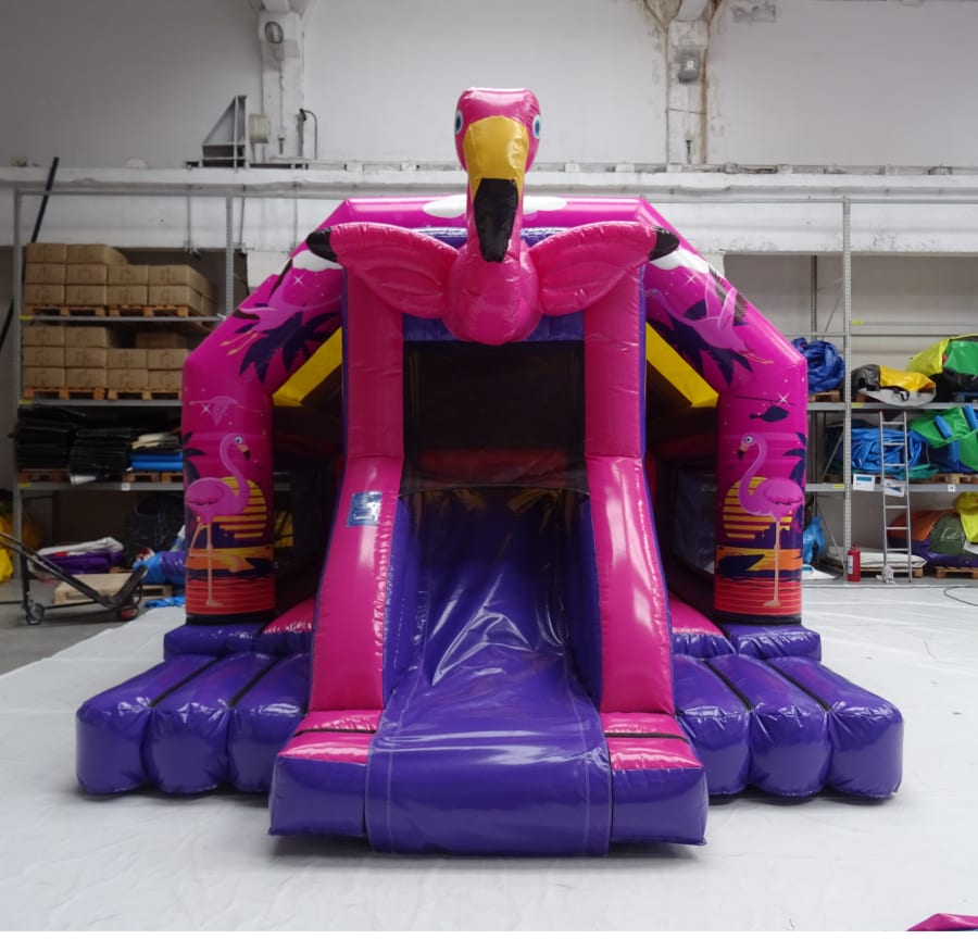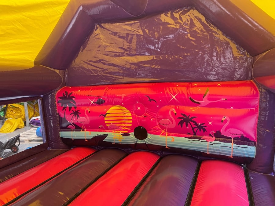 Imagine the laughter and excitement as kids bounce away, surrounded by a vibrant flamingo theme. The bouncy castle is not just a play area but a lively party zone with fantastic features: